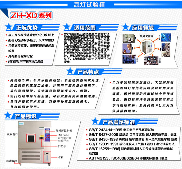 氙燈老化箱采用能模擬全陽(yáng)光光譜的氙弧燈來再現(xiàn)不同環(huán)境下存在的破壞性光波,可以為科研、產(chǎn)品開發(fā)和質(zhì)量控制提供相應(yīng)的環(huán)境模擬和加速試驗(yàn)。